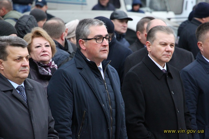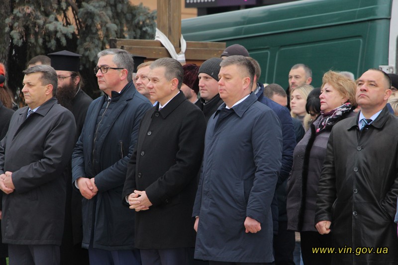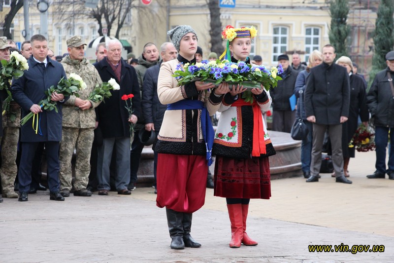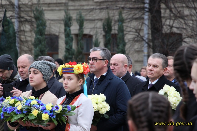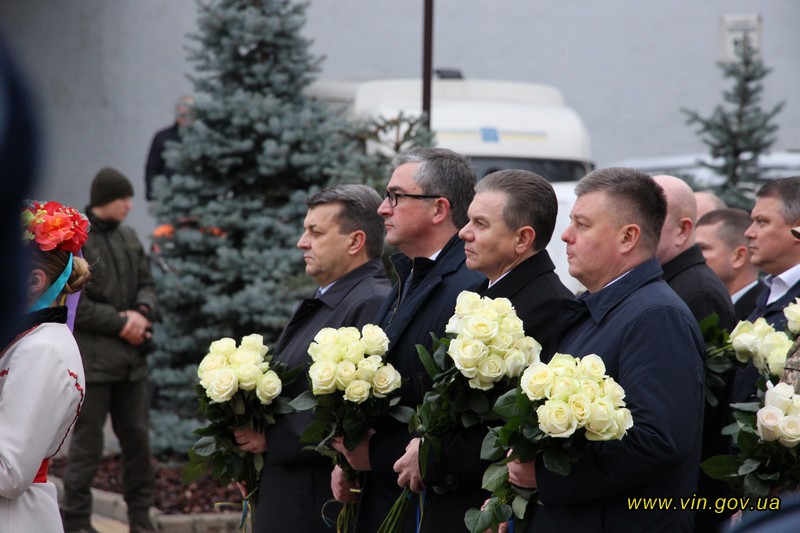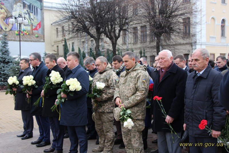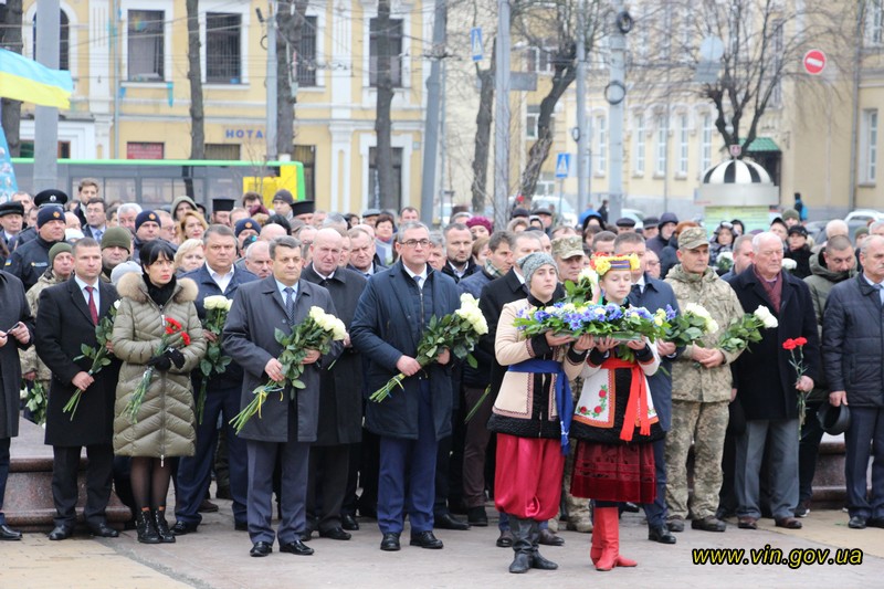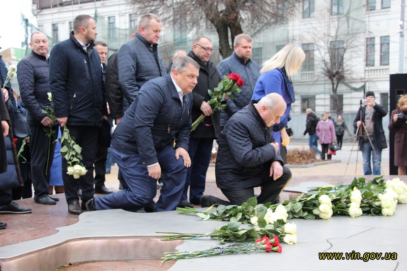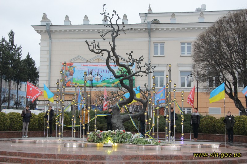 Голова обласної державної адміністрації Владислав Скальський, голова обласної ради Анатолій Олійник, Вінницький міський голова Сергій Моргунов, керівники структурних підрозділів обласної та міської влади, закладів, установ та організацій хвилиною мовчання вшанували пам`ять загиблих на Майдані, поклали квіткові композиції до пам`ятника «Дерево свободи», а також делегували учасників заходу покласти квіткові гірлянди до пам`ятників Героям Майдану та героям АТО /ООС, що на Меморіалі слави.