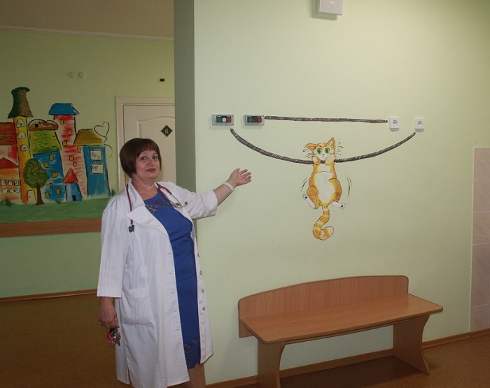 Особливо від цього потерпають маленькі пацієнти, які окрім допомоги медиків та батьків потребують ще й емоційної релаксації. Тому відтепер палати та стіни відділення прикрашають яскраві малюнки.