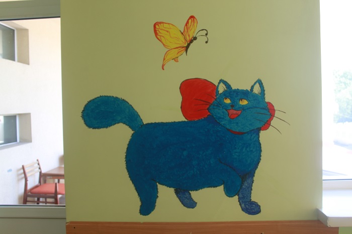 - На стінах зображені квіти, сценки з відомих мультфільмів та герої казок, кумедні коти. Ідея допомогти дітям виникла раптово. Ми подумали, що яскраві та веселі малюнки відволікатимуть дітей від думок про хвороби. Ми звернулися до керівництва лікарні з проханням посприяти нам у цьому. Вони із радістю і забезпечили нас усім необхідним, -з додає художник-волонтер Роман.
