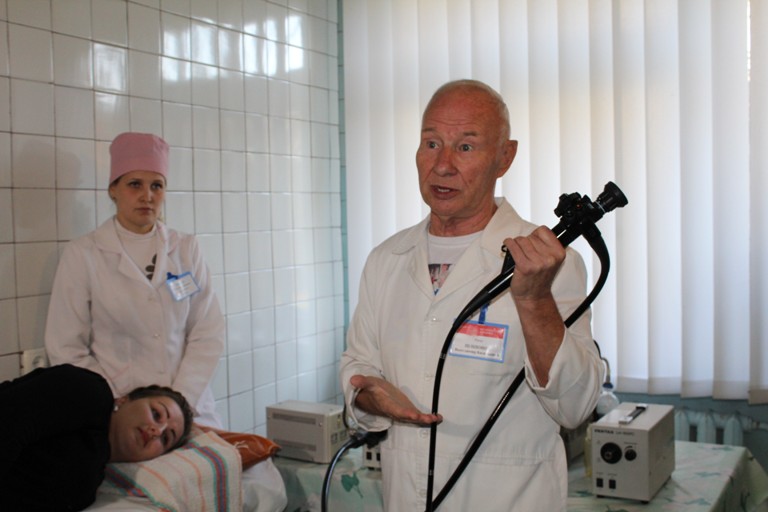 На базі відділення є кабінет УЗД, кабінет ендоскопічної діагностики. Цей кабінет є свого роду унікальним, адже тут здійснюють одразу декілька видів досліджень – гастроскопію, бронхоскопію, ректоскопію та іншу діагностику. Ці делікатні процедури виконує надзвичайно позитивний лікар-ендоскопіст, Заслужений лікар України Володимир Піліпонов. Він жартує, що пацієнта у його кабінеті можуть обстежити від початку до кінця травного тракту