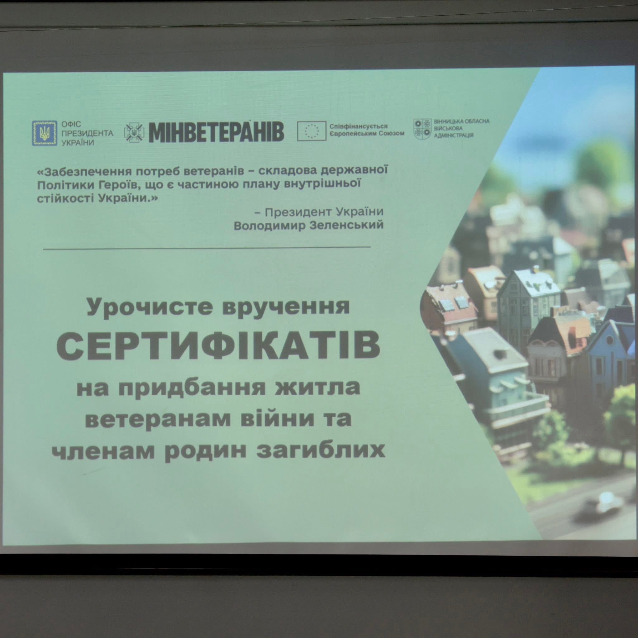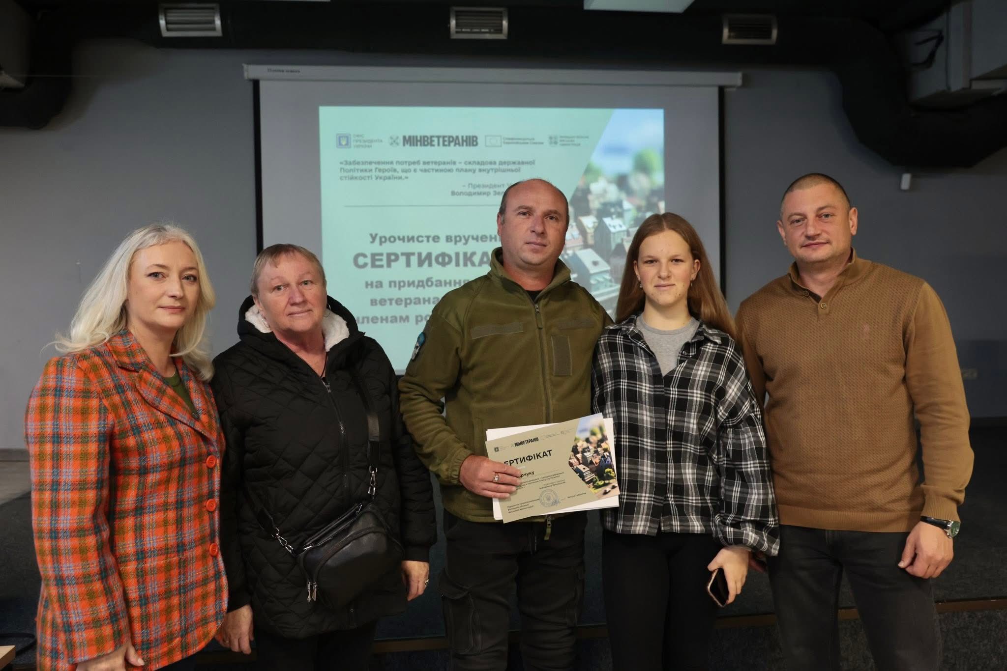 Вручення сертифікатів стало можливим завдяки Президенту України Володимиру Зеленському, Кабінету Міністрів України, Міністерству у справах ветеранів та фінансовій підтримці Європейського Союзу в межах інструменту Ukraine Facility.