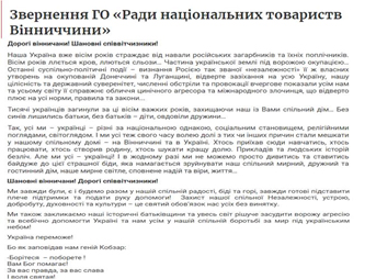 Дорогі вінничани! Шановні співвітчизники!